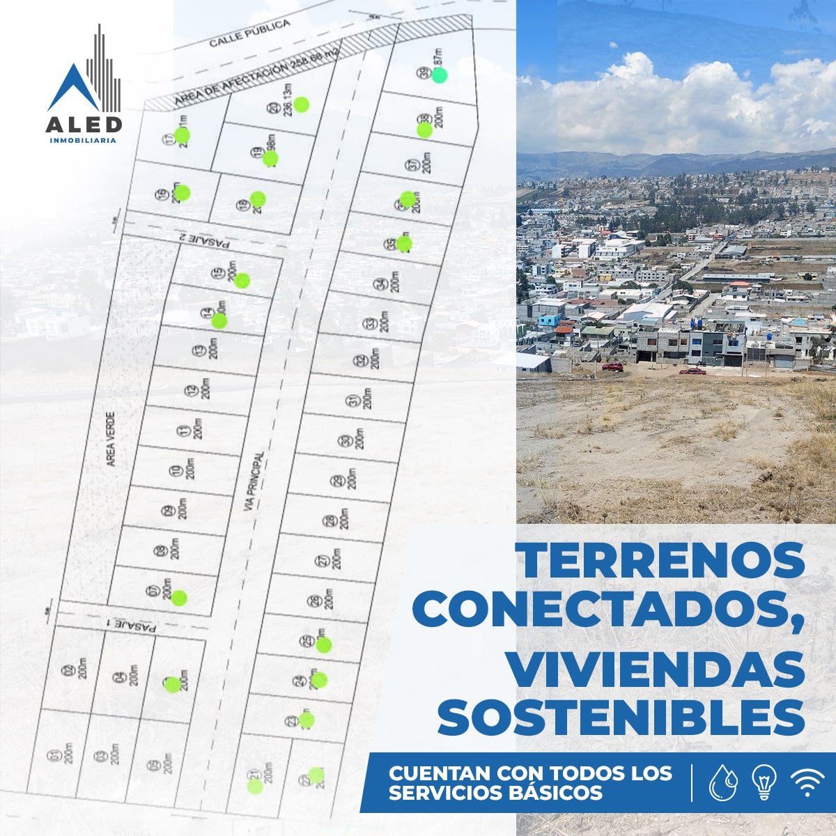 Te presentamos una oportunidad única para construir la casa de tus sueños. ALED Inmobiliaria ofrece 39 terrenos de 200m² cada uno, con una ubicación excepcional en Calderón – Sector Zabala.